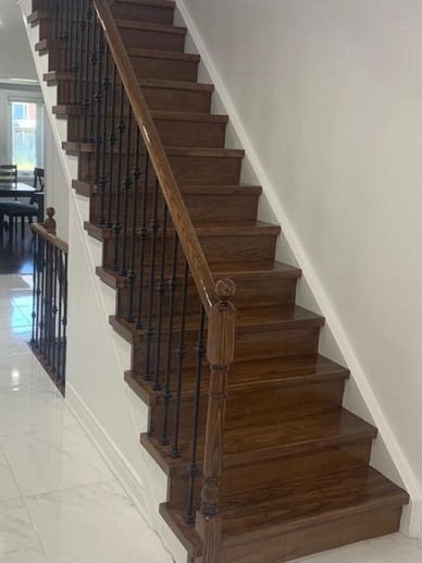 - Staining and change the color of the existing solid wood stairs.